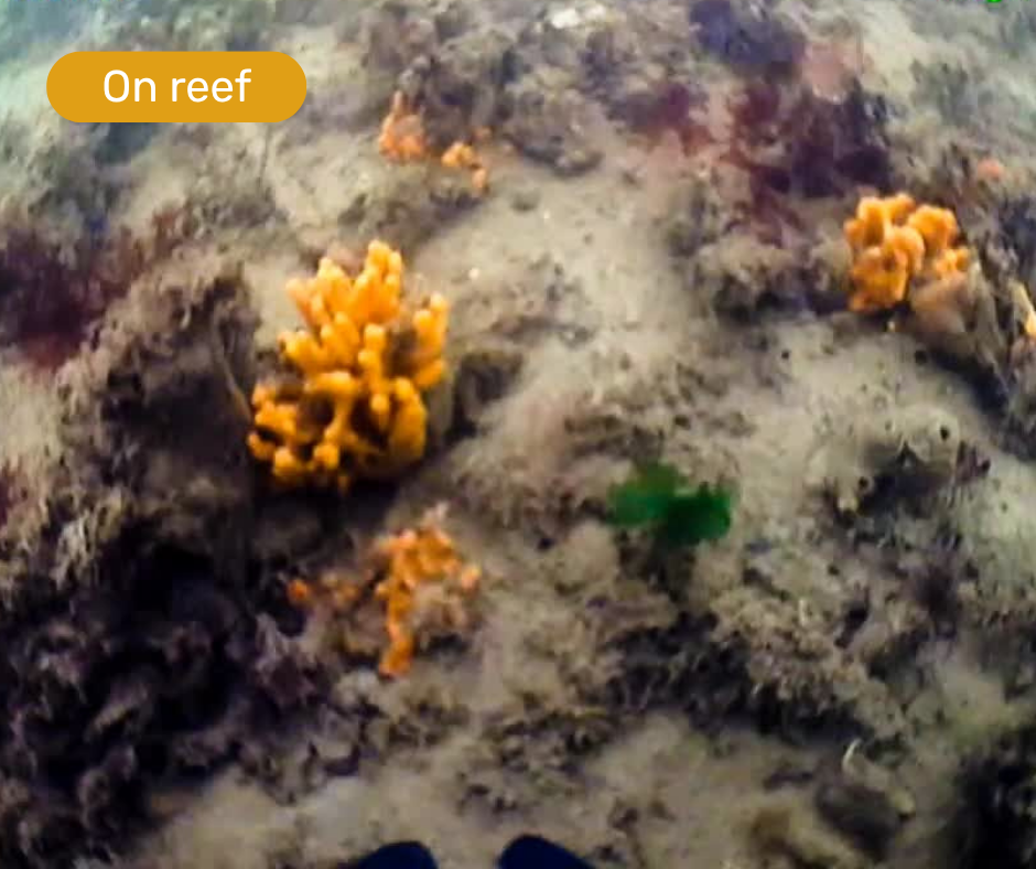 Above: The new footage comparing an adjacent unrestored area (left) and the reef area (right).